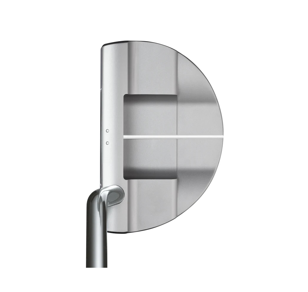Dieser elegante Schläger verfügt über eine tiefe, dreiteilige hintere Kavität mit der längsten Visierlinie aller Neo Classic-Modelle. Die Oberkante ist hinter dem Ball und über der Kavität dünner, was dem ER8 eine elegantere Präsentation bei der Ansprache verleiht. Der weiche hintere Abschnitt ermöglicht es den Augen, den klingenartigen Mittelabschnitt und die lange Visierlinie zu sehen, um die doppelten Ausrichtungsfunktionen für sowohl vertikale als auch parallele Justierung zu fördern. Die einfache Biegung, die direkt in den Kopf montiert ist, erzeugt eine leichte Zehenpendel, um einen geraden und kontinuierlichen Puttingstroke zu fördern.