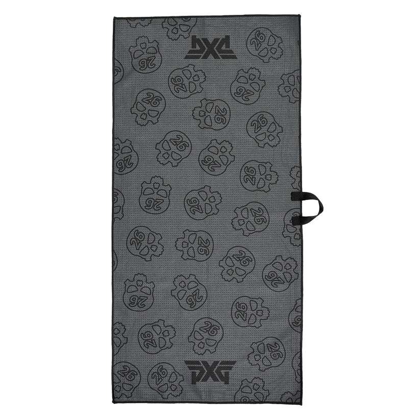 Our Darkness Repeat Player’s Towel brings fierce style to your golf bag. Patterned in our repeating Darkness Skull insignia on both sides, the microfiber waffle weave material will keep your clubs shiny and clean throughout your round. It features PXG logos on each end along with a woven loop to secure it to your bag.