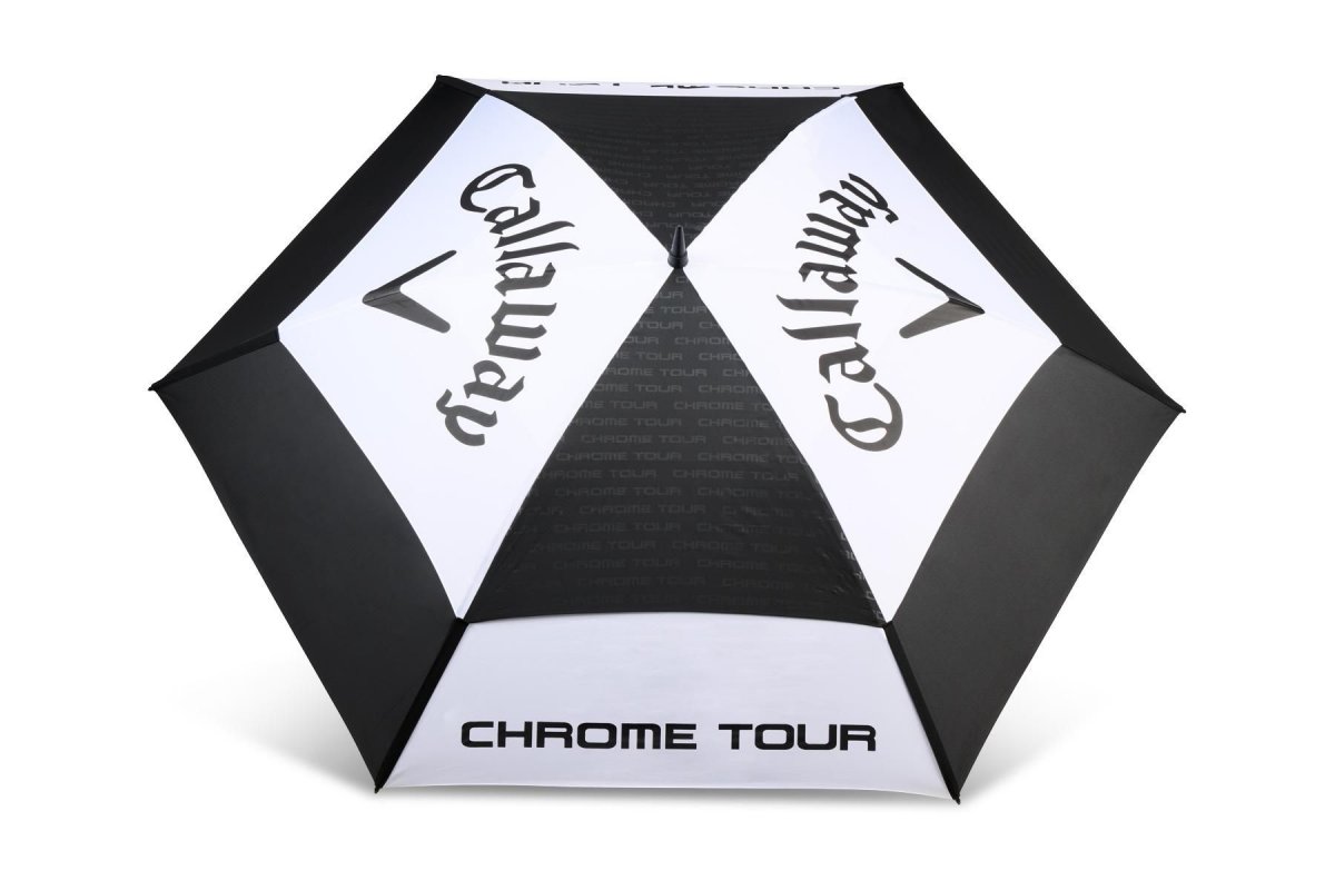 The ALL-NEW Callaway Tour Authentic Umbrella features a massive double canopy that shields you from the elements and allows wind to pass through, ensuring that the umbrella doesn't collapse and is easier to hold in harsh conditions.